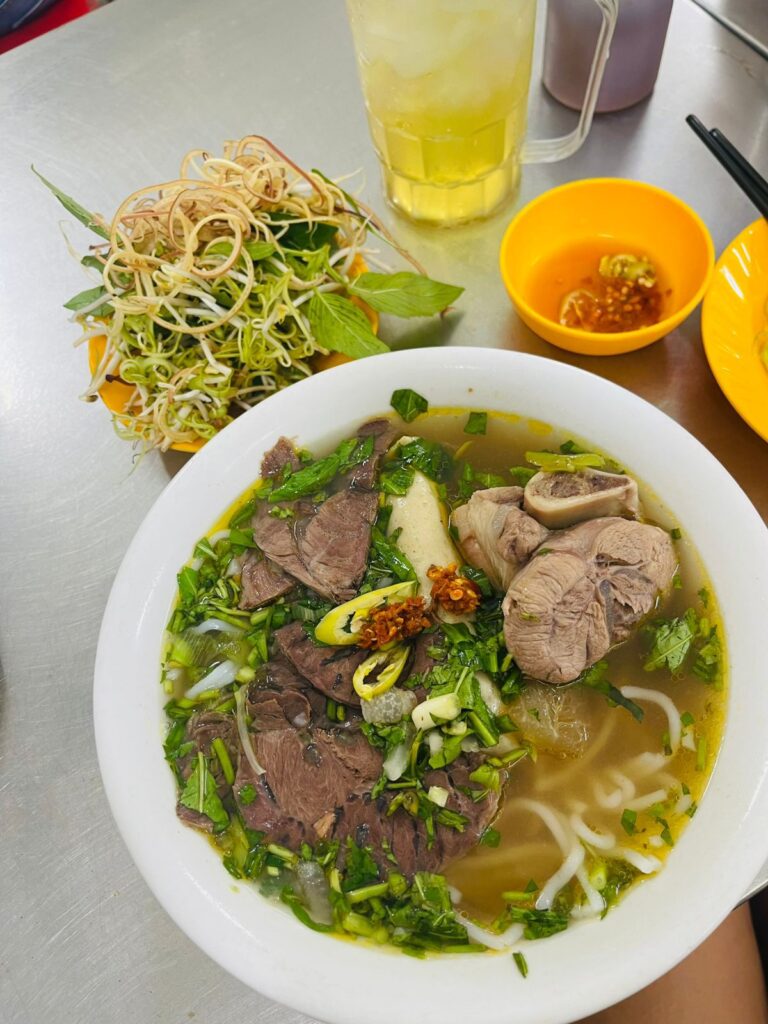 הדבר הראשון שפוגש אותך הוא הריח עמוק, מעט חריף וניחוחי במיוחד. המרק מתבשל שעות עם עצמות בקר, למון גראס ומשחת שרימפס, מה שיוצר עומק. בניגוד לפו ולטעמו הבהיר והעדין, בון בו הואה הוא מודגש, אדמתי ומיוחד.